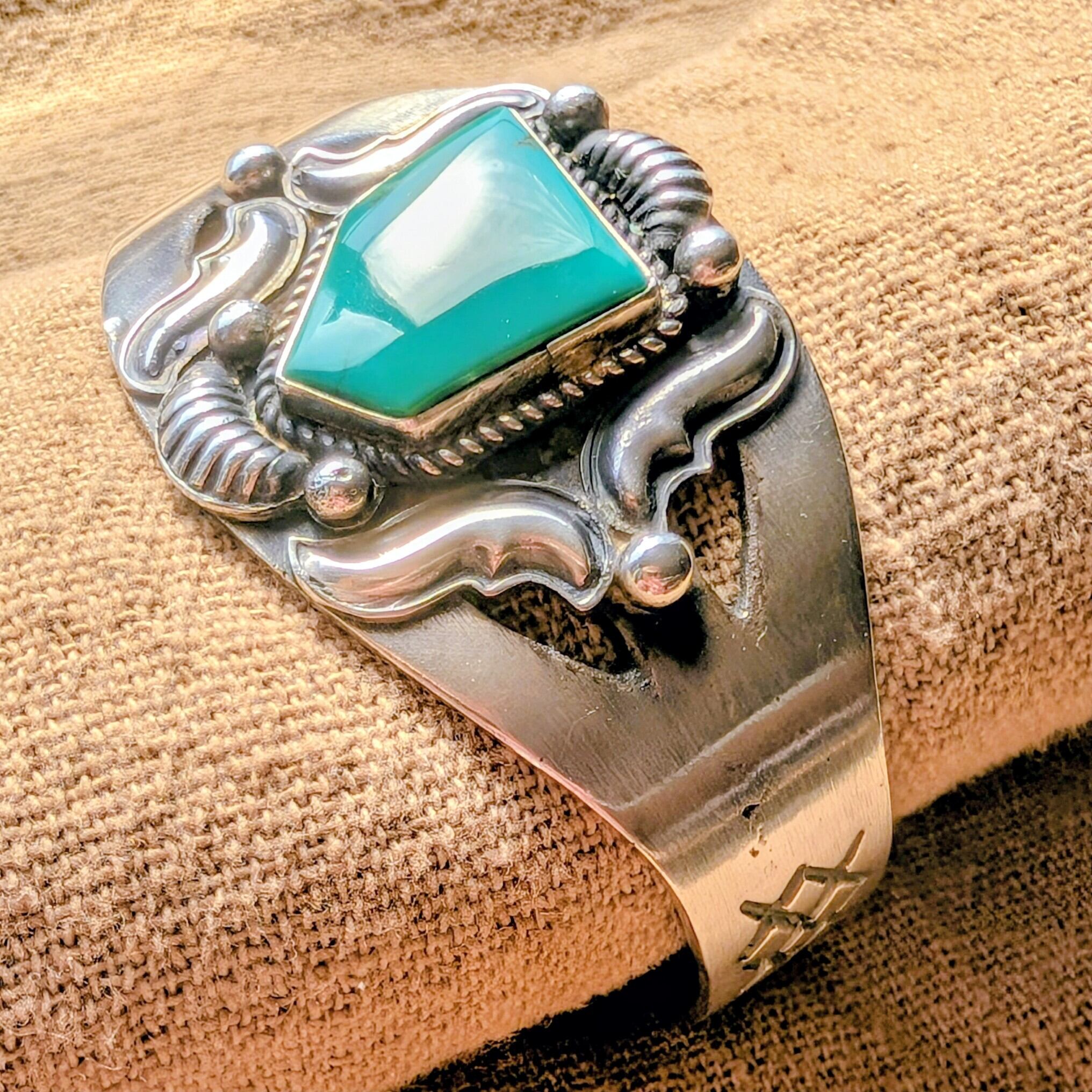 「手首に、ナバホの誇りと伝統を。シールド型ターコイズが放つ、圧倒的な存在感。」
