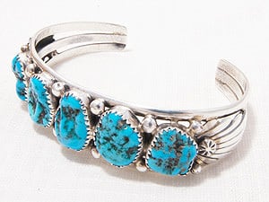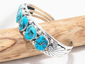大きなターコイズを表面に5個もはめ込んだワイルドで豪華なシルバーバングル。