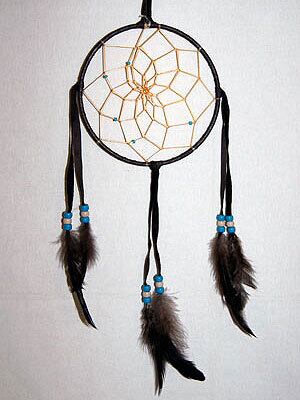 サークル(輪)にもカラフルな革を巻いたスタンダードタイプのドリームキャッチャー。クモの巣の部分には細かな多数のビーズを配置し、サークルにはたくさんのフェザーを装飾しています。