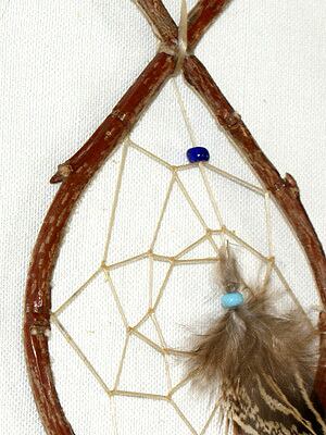 柳の枝とビーズとフェザーによってシンプルにかわいらしく装飾されたコンパクトな作品。