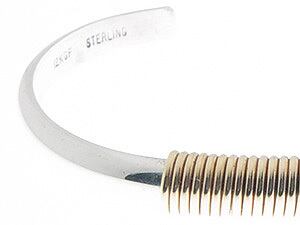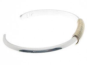 シルバーバングルの中心にスプリング状にデザインされた12Kのゴールドを配置しています。シンプルなデザインですがシルバーと金の組合せでゴージャスな雰囲気の作品となっています。シルバーと金の重量感も魅力です。