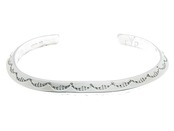 シルバーバングル表面にはスタンプワークにて上下に異なるデザインが掘り込まれております。
