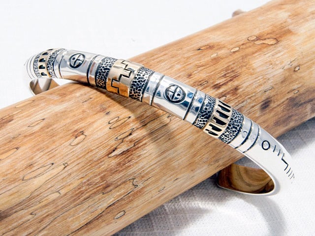 このシルバーバングルは、サントドミンゴ族のRoderickとナバホ族のMarilynのご夫婦合作の卓越した技術が融合した特別な作品です!