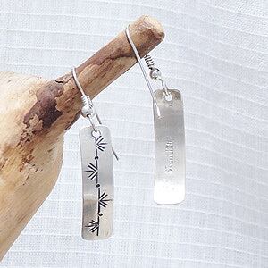 ラグーナ族アーティストによるスタンプワーク技法による自然をモチーフにしたシルバーのアーチ型のピアス。