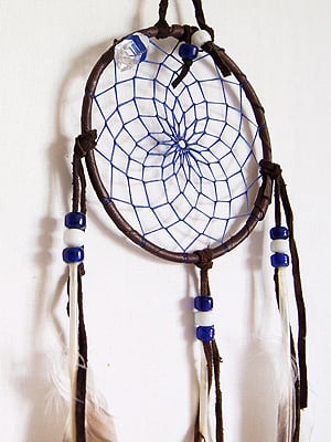 燻し革の色が落ち着いた雰囲気のドリームキャッチャー。
