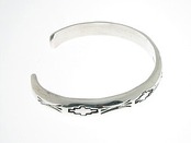インディアンの象徴的なデザインを入れたシンプルで落ち着いたイメージのシルバーバングル。使うほどに味わいが出てくる風合いと手首にかかる重量感はシルバーバングルならではの楽しみです!