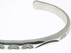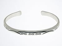インディアンの象徴的なデザインを入れたシンプルで落ち着いたイメージのシルバーバングル。使うほどに味わいが出てくる風合いと手首にかかる重量感はシルバーバングルならではの楽しみです!